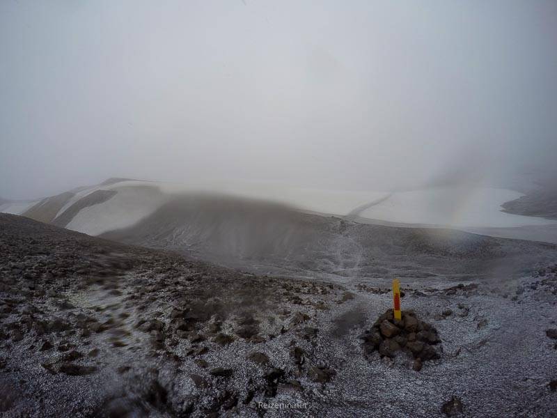 Let op: In het laatste deel van de route is de kans op mist en/of sneeuw groot. Hoewel het pad goed is aangegeven zijn we twee keer van het pad geraakt door het slechte zicht. Wees dus extra alert op de markering van de route wanneer het sneeuwt en/of het zicht beperkt is.
