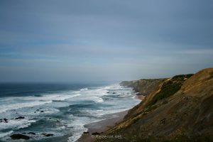 Na de stranden met kliffen, rots bogen en eenzame overblijfselen is het tijd voor een ander soort strand. Praia do Amoreira is niet altijd het meest geschikte strand om te zwemmen of surfen, maar dat zijn niet altijd vereisten om een mooie dag op het strand te hebben. Praia do Amoreira is ruig, vooral waar de lava resten bovenkomen en de oceaan in verdwijnen. Met een storm op komst geloof je je ogen al helemaal niet meer. Maar er is ook een zachte kant, volg het strand tot aan de riviermonding en loop stroomopwaarts langs de oevers. De stilte en de uitzichten stralen een kalmte uit die we zijn gaan associëren met Portugal. Ja hier komt alles samen.