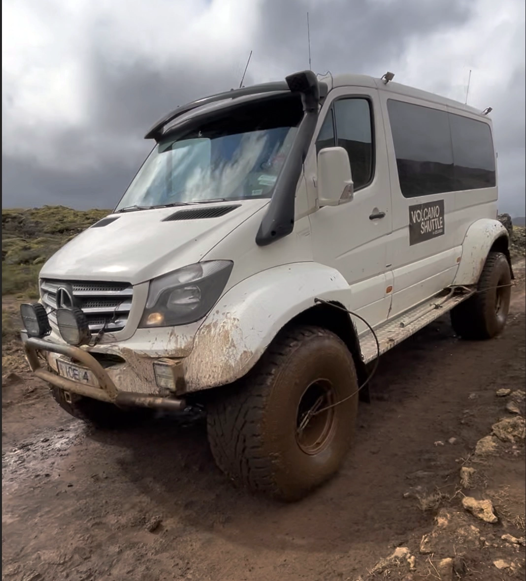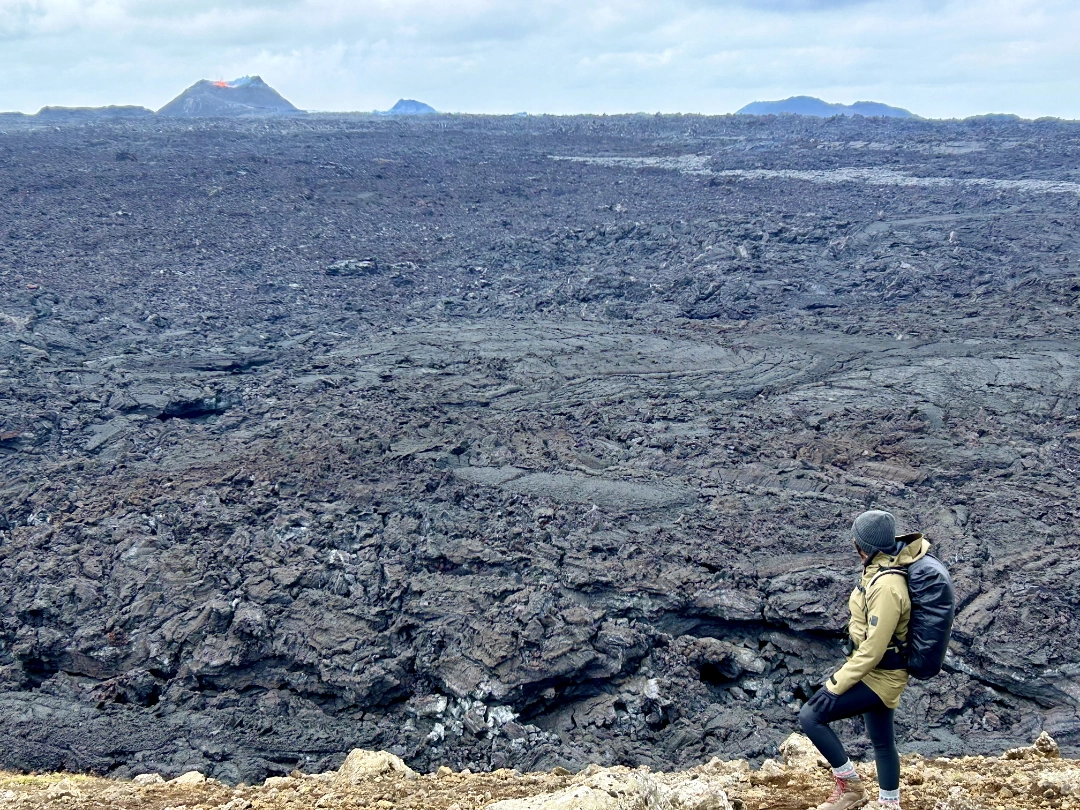 Ongeveer halverwege onze reis (we konden er niet verder vandaan zitten) barstte de Sundhnúkur-vulkaan uit (augustus 2025). We twijfelden of we onze hele route moesten omgooien, maar gelukkig bleef de krater doorgaan met lava spuwen. Twee weken later liepen we samen met honderden andere mensen vanaf de betaalde parkeerplaats over een pad naar het punt waar we op veilige afstand de krater konden zien. Er reden zelfs typisch IJslandse shuttlebusjes. En jawel: de vulkaan was nog steeds actief! Een bijzonder tafereel en indrukwekkend om te zien hoe snel er een nieuw lavaveld gevormd is.