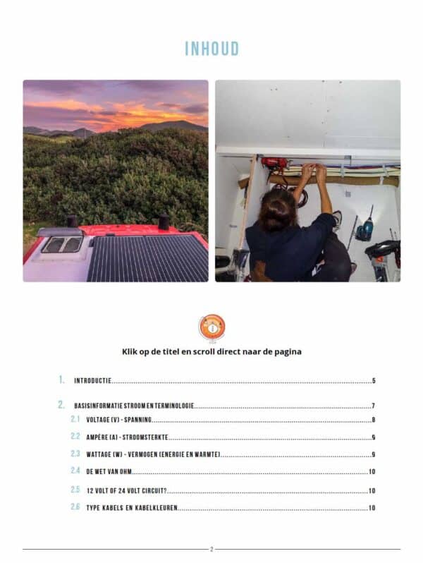 We komen onderweg veel camperaars, vanlifers en levensgenieters tegen. In de meest creatieve omgebouwde busjes, imposante 4×4 trucks of juist in een fabriekscamper. Het maakt niet uit wat voor een camper of bus je rijdt iedereen heeft stroom nodig. We merken dat het onderwerp stroom aanleggen binnen het zelfbouwen van een camper een spannend onderdeel is. Daarom dat we dit onderdeel los hebben getrokken en uiteen hebben gezet in dit boek ‘Je eigen camper elektra aanleggen’. Je leest over de basisbegrippen, hoe je je verbruik in kaart brengt en berekent hoe groot de accucapaciteit moet zijn. Maar we gaan nog veel verder, tips en tricks voor het aanleggen van de elektriciteitskabels, een stappenplan voor het installeren van een zonnepaneel en op wat voor een manieren je je accu’s kunt bijladen. We sluiten af met tips voor onderweg, want het monitoren van de accu voltage gaat een onderdeel zijn tijdens het rondreizen in je zelfbouw camper.